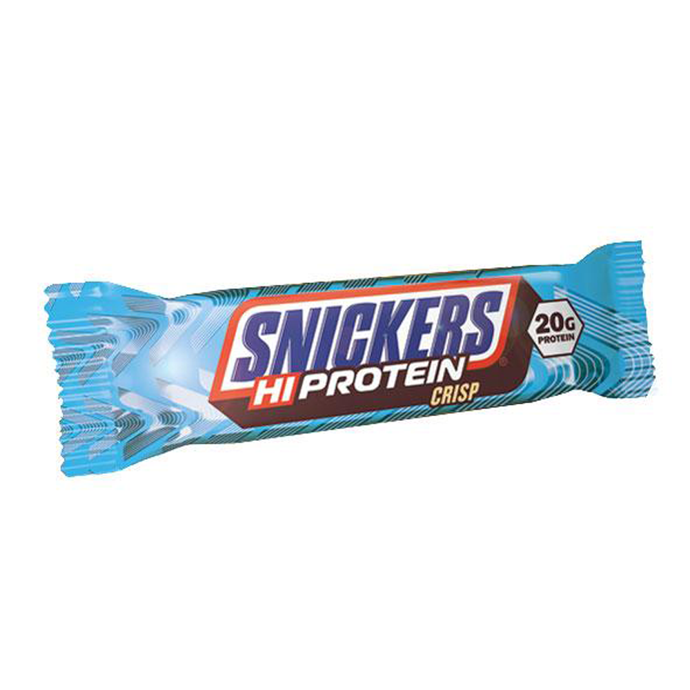 Μπάρες Snickers Hi Protein Crisp, σνακ υψηλής περιεκτικότητας σε πρωτεΐνες με καραμέλα, φυστίκια, σοκολάτα και 20 g πρωτεΐνης.