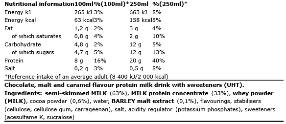 - Με 20 γραμμάρια πρωτεΐνης, συμβάλλει αποτελεσματικά στην αποκατάσταση και την ανάπτυξη του μυϊκού ιστού μετά την προπόνηση.